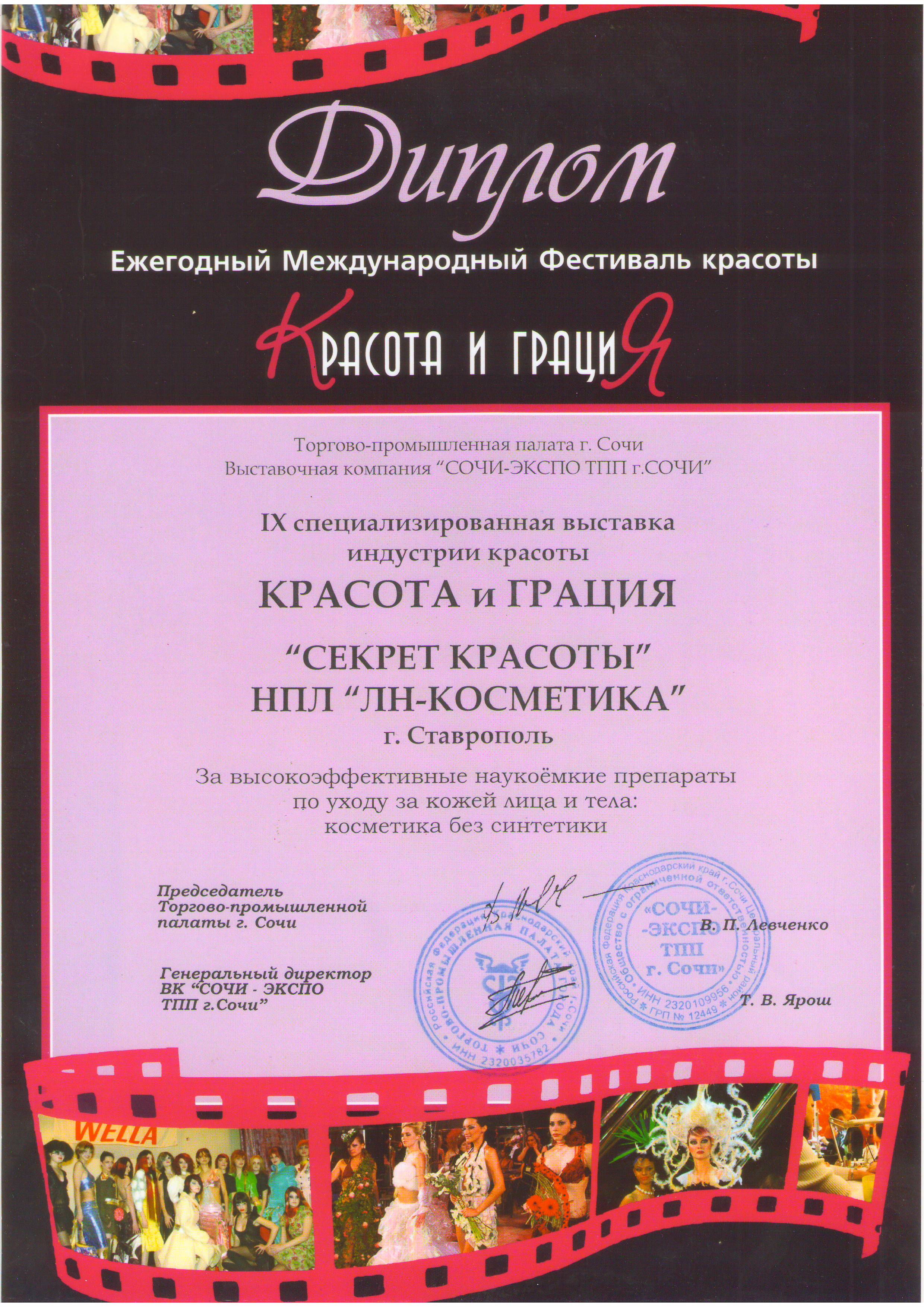 Компания ООО НПЛ «ЛН-Косметика» регулярно участвует во Всероссийских и Международных специализированных и межотраслевых выставках и конкурсах. Продукция Компании «Секрет красоты» отмечена медалями и дипломами. Многочисленные знаки признания подтверждают высокое качество и уникальность сухой косметики «Секрет красоты», а также эффективность работы Компании в продвижении продукции на рынок.